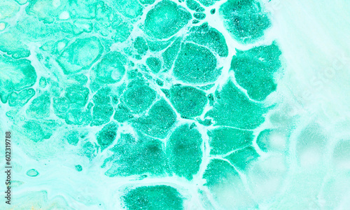 © amixstudio, Naklejka premium Abstract green color background. Multicolored fluid art. Waves, splashes and blots acrylic alcohol ink, paints under water