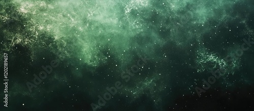 Fototapeta premium Abstract green cosmic background with stars and nebula, suitable for use as a wallpaper or design element, featuring ample copy space.