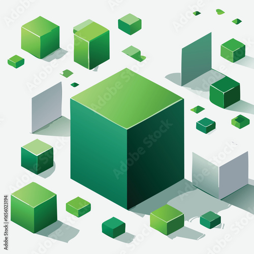 Obraz premium Abstract Green Cubes Isometric Design