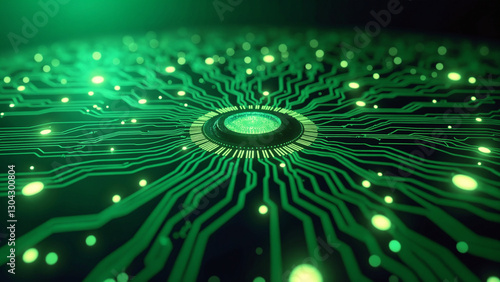 Fototapeta premium Abstract Green Digital Circuit Board with Glowing Connections