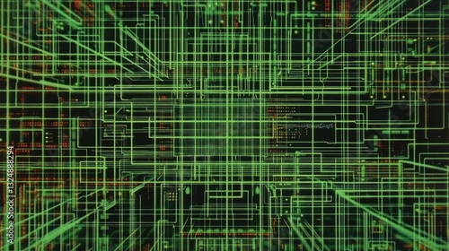 © DZIKRA , Obraz premium Abstract green digital network, data flow