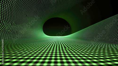 Obraz premium Abstract Green Digital Tunnel: A Futuristic 3D Grid Network Design, Exploring...
