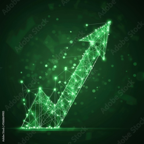 Obraz premium Abstract green geometric arrow representing growth and success on a dark...