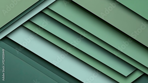 © Matcha_09, Obraz premium Abstract Green Geometric Layers with Soft Gradient and Texture