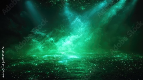 Fototapeta premium Abstract green glowing mist particles on dark background