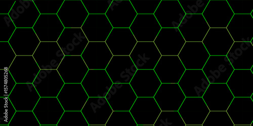 Obraz premium Abstract Green Hexagonal Pattern on a Dark Background with Geometric Shapes