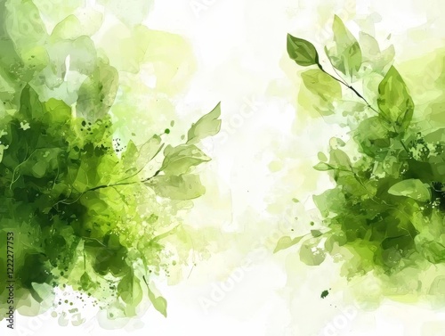 Fototapeta premium Abstract Green Leaves Watercolor Painting, Background, Texture, Art, Design,...