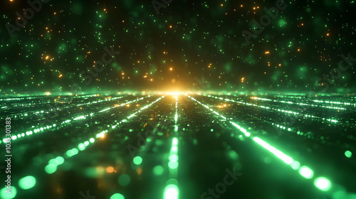 Naklejka premium Abstract Green Lights and Glowing Lines Create a Futuristic Landscape
