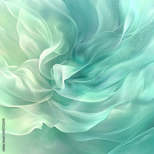 © Fatoniyah, Obraz premium Abstract Green Silk Fabric Swirling Design