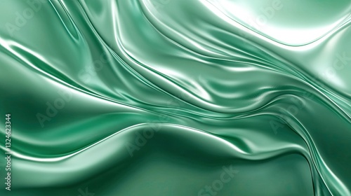 © Shahida, Obraz premium Abstract Green Silk Fabric Waves Flowing Background Texture Image