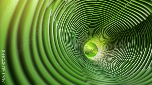 © Kettisak, Obraz premium Abstract Green Swirling Tunnel Leading to Bright Light 3D Rendering