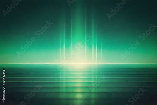 © AI Designer, Fototapeta premium Abstract Green Teal Light Beams on Horizontal Striped Surface Background Wallpaper