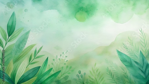 Obraz premium Abstract Green Watercolor Background With Lush Leaves And Soft Light