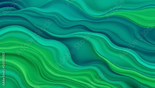 © sosis, Fototapeta premium Abstract Green Wave Pattern Background Design