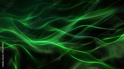 © nurul, Obraz premium Abstract green wave with a lot of sparkles moving texture technology background