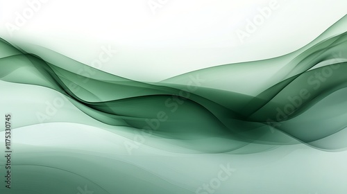 Obraz premium Abstract green waves flow across a white background. Subtle gradations of...