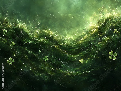 Obraz premium Abstract Green Waves with Delicate White Flowers in a Mystical Atmosphere