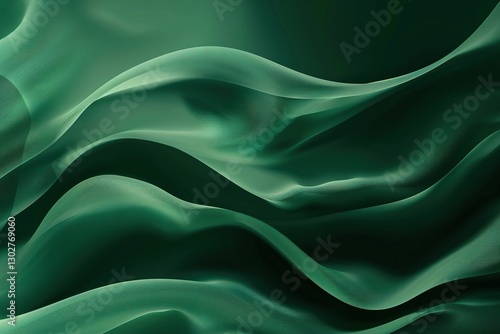 Fototapeta premium Abstract green waves with flowing fabric texture creating calming visual...