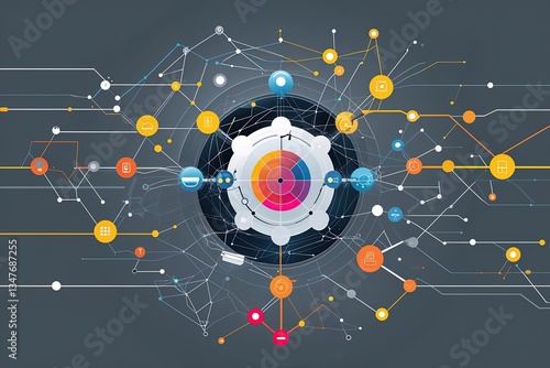 Obraz premium Abstract Grey Background Poster with Dynamic Technology Network Illustration
