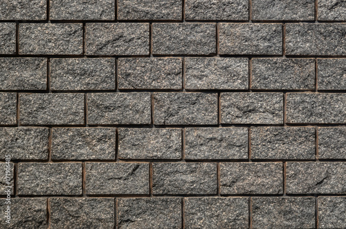 Fototapeta premium Abstract grey brick wall pattern background, rough solid texture and grunge surface backdrop for architecture material decoration or retro interior room concepts