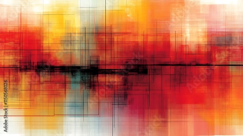 Obraz premium Abstract Grid Pattern Warm Hues Digital Painting