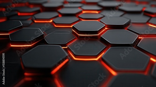 Fototapeta premium Abstract Grid Pattern with Red Glowing Hexagon Edges.