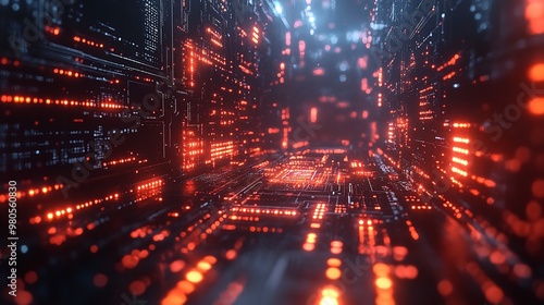 Naklejka premium Abstract Grid with Pink and Blue Lights and Bokeh Effect