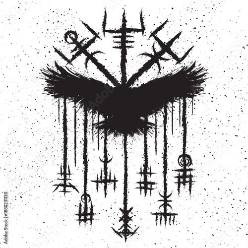 Fototapeta premium Abstract grunge vegvisir raven silhouette