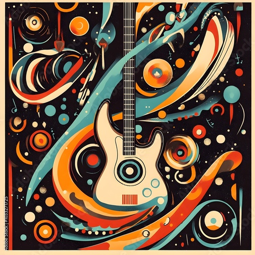 Fototapeta premium Abstract Guitar with Colorful Swirls and Circles