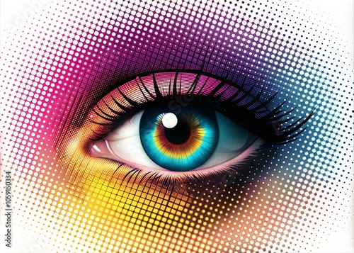 © Aminograpix, Obraz premium Abstract halftone eye collage element. Trendy grunge design element
