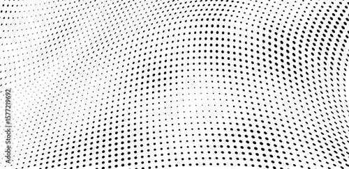 © VYACHESLAV KRAVTSOV, Fototapeta premium Abstract halftone wave dotted background. Halftone twisted grunge pattern, dot, circle. Vector modern optical halftone pop art texture for poster, business card, cover, label mock-up, sticker layout