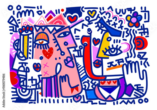 © Suryadi, Fototapeta premium abstract hand drawing face portrait doodle geometric decorative outlines vector illustration. Line art aesthetic design for wall art, prints, cards, poster, decoration, bannner.