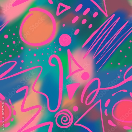© Didem, Fototapeta premium Abstract Hand Drawing Geometric Shapes Seamless Pattern with Digital Paint Watercolor Tie Dye Ombre Gradient Multi Colored Background