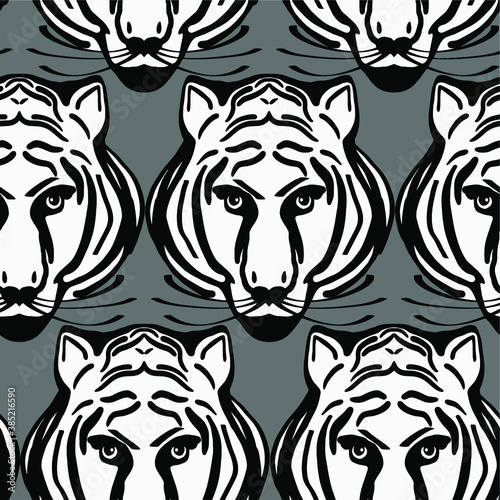 Obraz premium Abstract Hand Drawing Tribal Tiger Heads Repeating Vector Pattern Isolated...