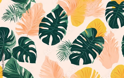© MR.DEEN, Naklejka premium Abstract hand drawing tropical plant leaves background