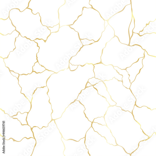 Obraz premium Abstract hand drawn seamless pattern, kintsugi background with gold gradient,...