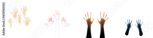 © Naruedetch, Fototapeta premium Abstract Hand Shadow Silhouettes on White Background