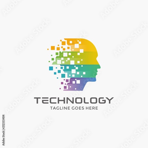 © creative_art86, Obraz premium Abstract head with pixel logo