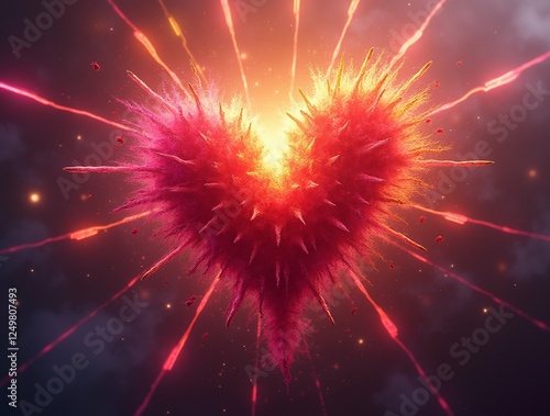 Fototapeta premium Abstract heart design, showcasing a dynamic explosion of color and energy.