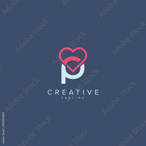 Obraz premium Abstract Heart Logo Design. Initial P Letter Concept.