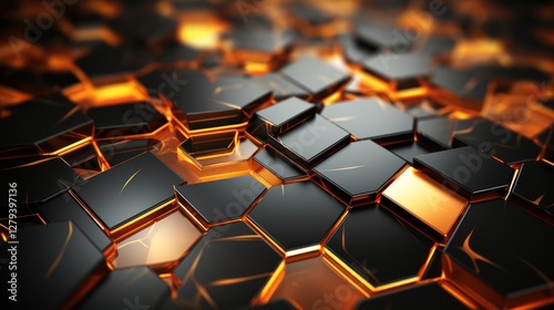 © Fatqur, Obraz premium Abstract Hexagon Pattern: Black and Gold Geometric Design