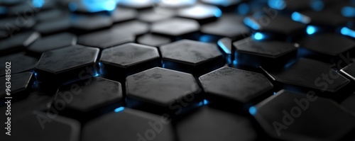 Fototapeta premium Abstract Hexagon Pattern with Blue Glowing Edges