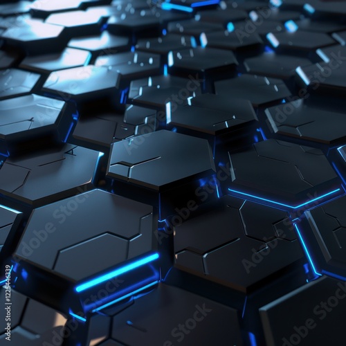 © Kiw, Obraz premium Abstract Hexagon Pattern with Glowing Blue Lines