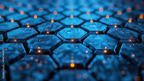 © hanafi 99d, Obraz premium Abstract Hexagon Pattern with Glowing Lights
