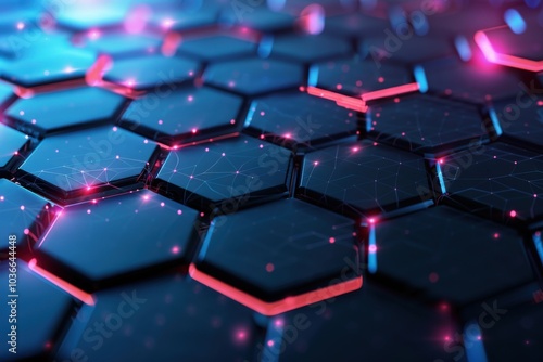 © Mutimul, Fototapeta premium Abstract Hexagon Pattern with Glowing Lines and Dots