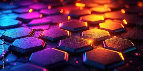 © Alienmarsh, Obraz premium Abstract Hexagon Pattern with Neon Lights