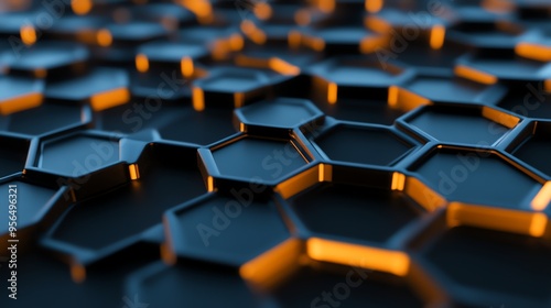 Obraz premium Abstract hexagon pattern with orange glowing edges.