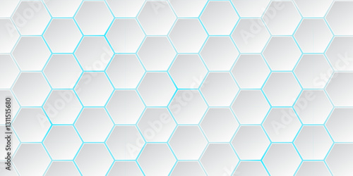 © hossain, Fototapeta premium Abstract Hexagon white background with blue light. White abstract geometric vector graphic background. Hexagon. Illustration. Vector.