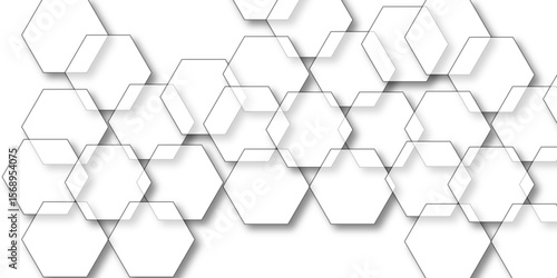 © Sofiqul, Fototapeta premium Abstract hexagon white background with shadow. Luxury white pattern with hexagons. abstract 3d hexagonal background with shadow. 3D futuristic abstract honeycomb mosaic background.