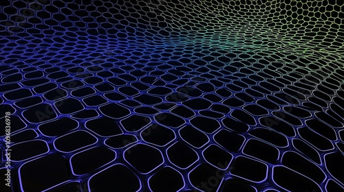 © Lavanya, Fototapeta premium Abstract hexagonal grid background with blue and green lines